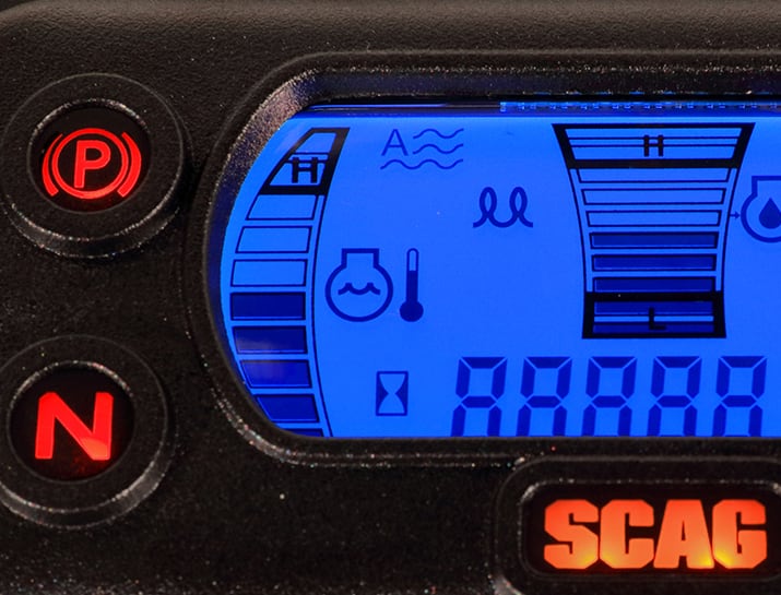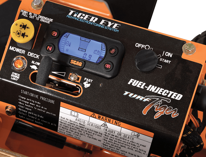 Selon le modèle de tondeuse et la sélection de moteur, le système de surveillance avancé Tiger Eye™ surveille une grande variété de systèmes en temps réel, vous donnant des informations précieuses en un coup d’œil, directement depuis le siège de l’opérateur.