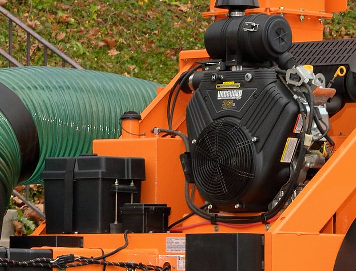Within the unit’s 10.5″-wide housing is a welded-steel impeller with 1/2″-thick steel blades. Dynamically balanced for reduced vibration, longer life and less stress on the engine, these loaders boast an effective, high-output (35BV = up to 6,781 CFM; 37CH = up to 6,909 CFM; 49KBD = up to 7,318 CFM), debris-reducing design.